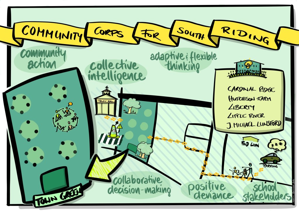 A grassroots community service project providing 8-10 feet of physically-distanced socialization and academic support for children (K-8) in outdoor circles and soothing spaces, while trauma-informed and framed in Executive Function (EF) and Social and Emotional Learning (SEL). High school youth volunteer as facilitators of the circles and spaces to earn community service hours and join in modeling how to cultivate adaptability and build resiliency through service learning.